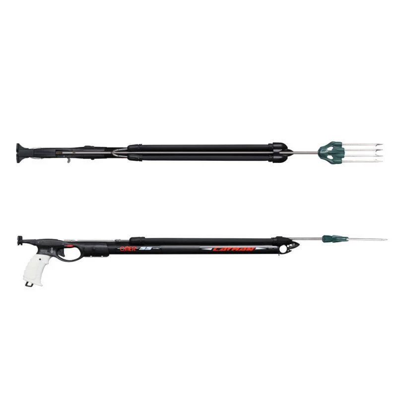 Elle est constituĂ©e d’un tube avec un guide flèche intĂ©grĂ© et de sandows Power 18, ce qui la rend parfaite pour la chasse en bordure de rochers. Sa flèche en inox de 6,5 mm avec une tĂŞte filetĂ©e et une fouine de 4 dents Mustad est Ă©galement adaptĂ©e Ă cette activitĂ©.