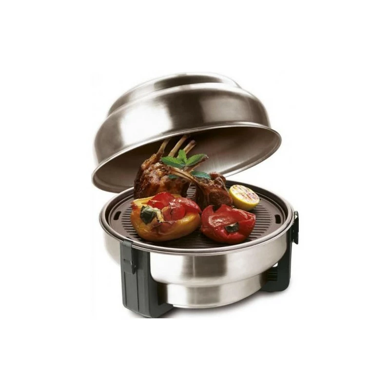 Grille / Plancha : La plaque grill/plancha, recouverte d’un traitement antiadhésif, sert à deux choses: Premièrement, le coté strié est utilisé pour les grillades et pièces de poulets, saucisses, poissons etc., Deuxièmement, elle peut aussi être inversée et devient alors une plaque lisse, pour la cuisson des pizzas, des crêpes, du pain ou des œufs et bacon, des légumes, les desserts comme les fruits grillés…