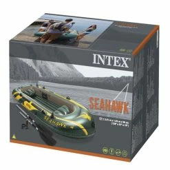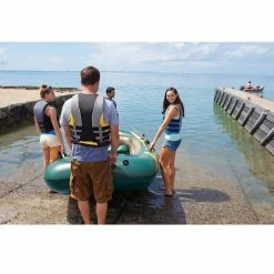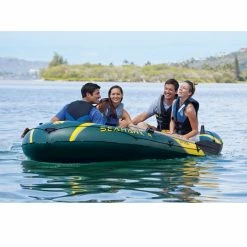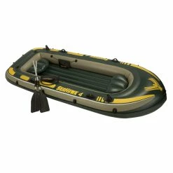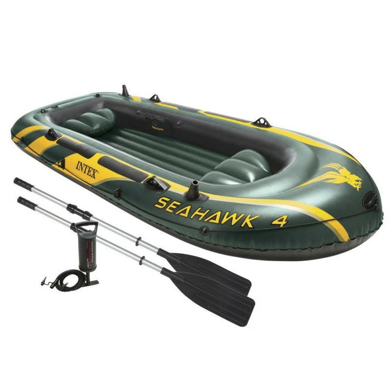 Bateau pneumatique pour 4 personnes avec coussins gonflables Ă l’arrière pour plus de confort..