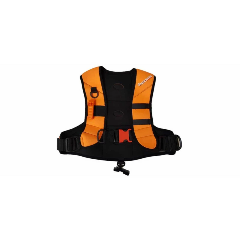 Vous avez la possibilitĂ© de charger jusqu’Ă 5 kilos. Vous retrouvez au niveau des bretelles, un sifflet et deux bandes velcro permettant l’installation d’un couteau de secours.