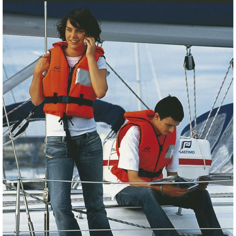 Le gilet typhon 100N de PLASTIMO avec fermeture par zip est trĂšs confortable avec un col ergonomique 3 parties.