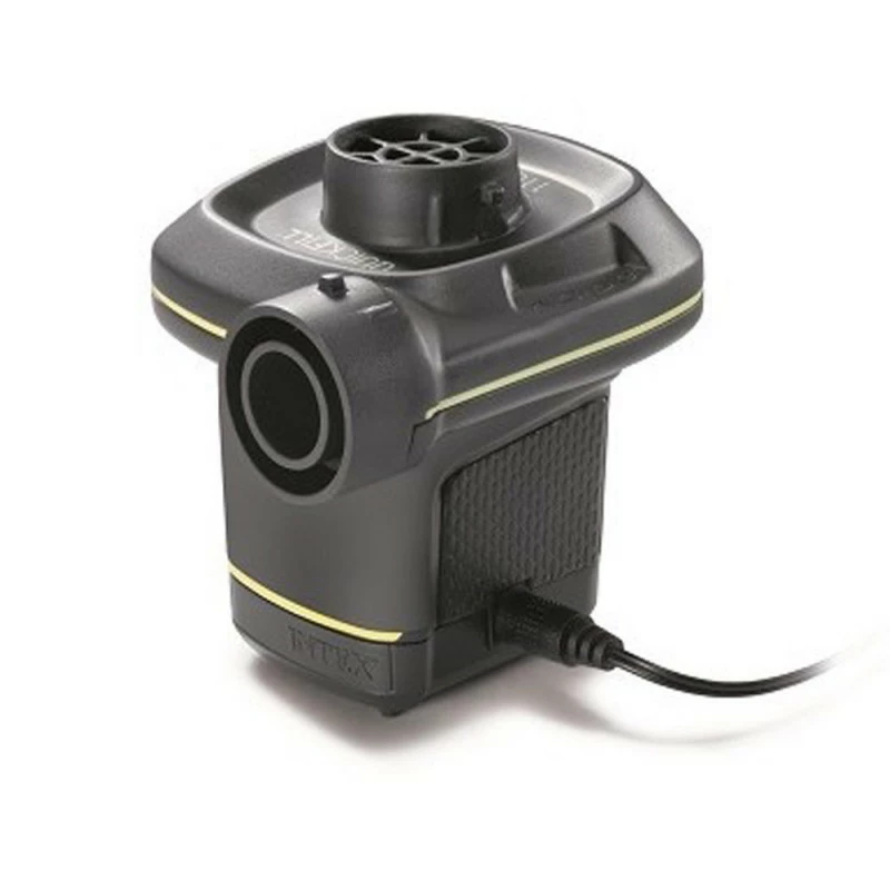 Gonfleur électrique très pratique, fonctionnant sur allume-cigare 12V ou prise électrique 220V, permettant un gonflage à domicile ou en plein air.
