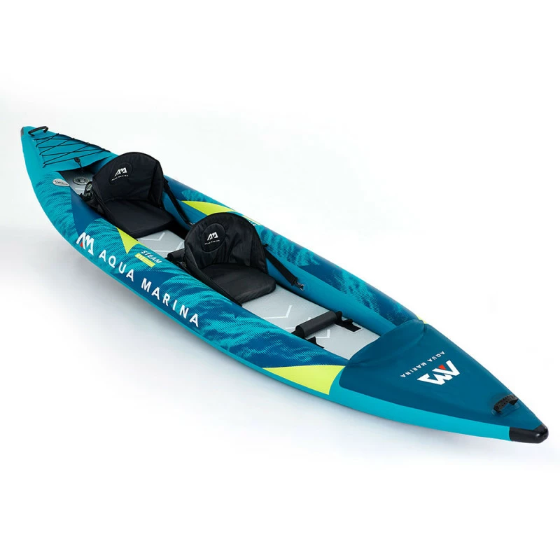 Le kayak gonflable Aquamarina Steam 2 personnes est un canoë kayak de randonnée pour 2 personnes. Un kayak gonflable stable, rigide et confortable fabriqué avec un pvc renforcé et un plancher en drop stitch rigide. Le kayak Aqua Marina Steam 2 est idéal pour les balades en couple ou entre amis.