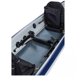 Il est livré de série avec un équipement et des finitions de qualité : deux sièges dessinés avec un dossier haut qui assurent un très bon maintien du dos et une assise confortable. Un pont recouvert d’un pad EVA vous garantit un maximum de confort. Deux cale-pieds sur sangles viennent compléter cet équipement pour pagayer efficacement lors de longues randonnées. Son système de gouvernail ingénieux permet de maintenir son cap facilement ou de piloter le kayak grâce au système de cale-pieds.