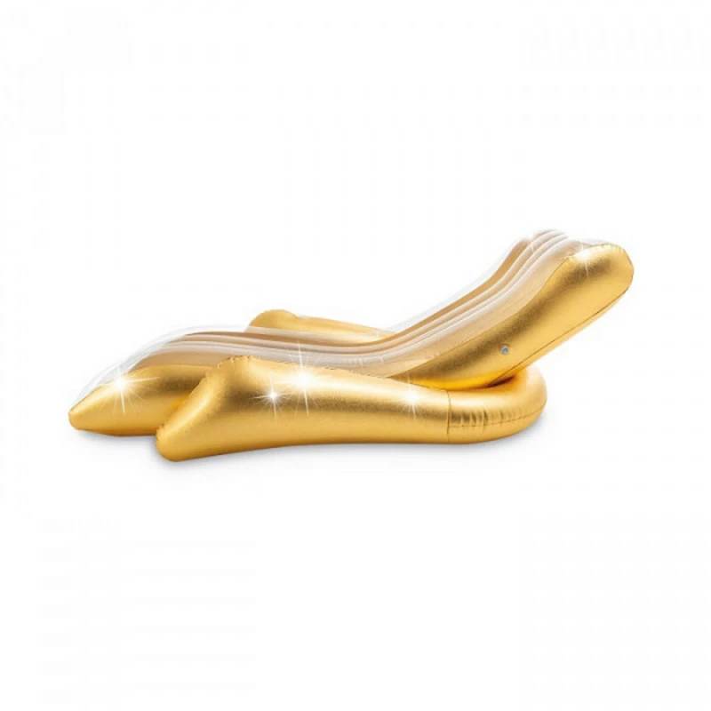 Ce matelas gonflable dorée est très confortable grâce à un dossier et ces deux accoudoirs. Vous pouvez mettre votre boisson sur le porte-verre. Ce matelas très tendance brillera dans votre piscine. Allongez vous et profitez du soleil !