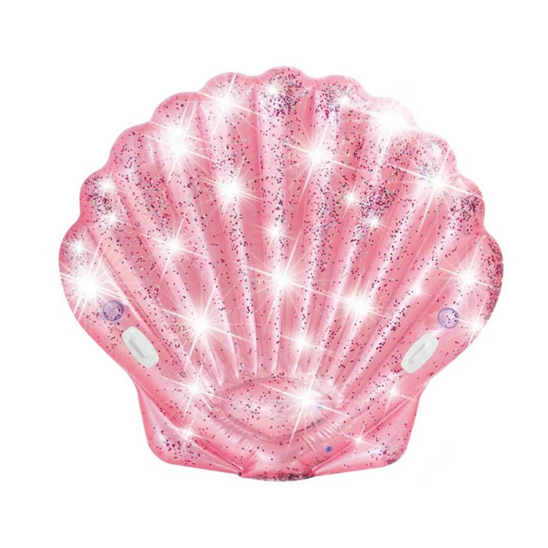 Ce matelas gonflable en forme de coquillage est suffisamment large pour pouvoir s’y installer Ă deux. Sa couleur rose et ses paillettes font de ce matelas un modèle unique. Il est Ă©quipĂ© de poignĂ©es et de portes gobelets.