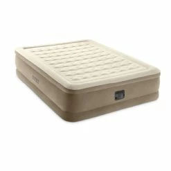 Un matelas intex pour 2 personnes très confortable. Plus besoin de drap, avec son revêtement doux, il vous offre une nuit agréable.De plus, en seulement 4 minutes, avec son gonfleur électriques intégré, votre lit est installé et désinstallé.