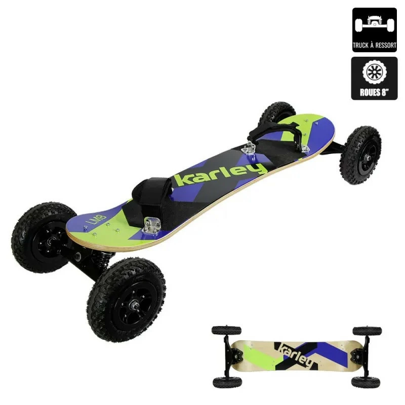 Le mountainboard Springer LM8 est équipé de trucks à ressorts, un vrai plus permettant d’amortir les chocs, offrant un meilleur contrôle, idéal pour des descentes ou les terrains difficiles. Le mountainboard Springer LM8 à ressort est idéal pour une utilisation tout terrain.