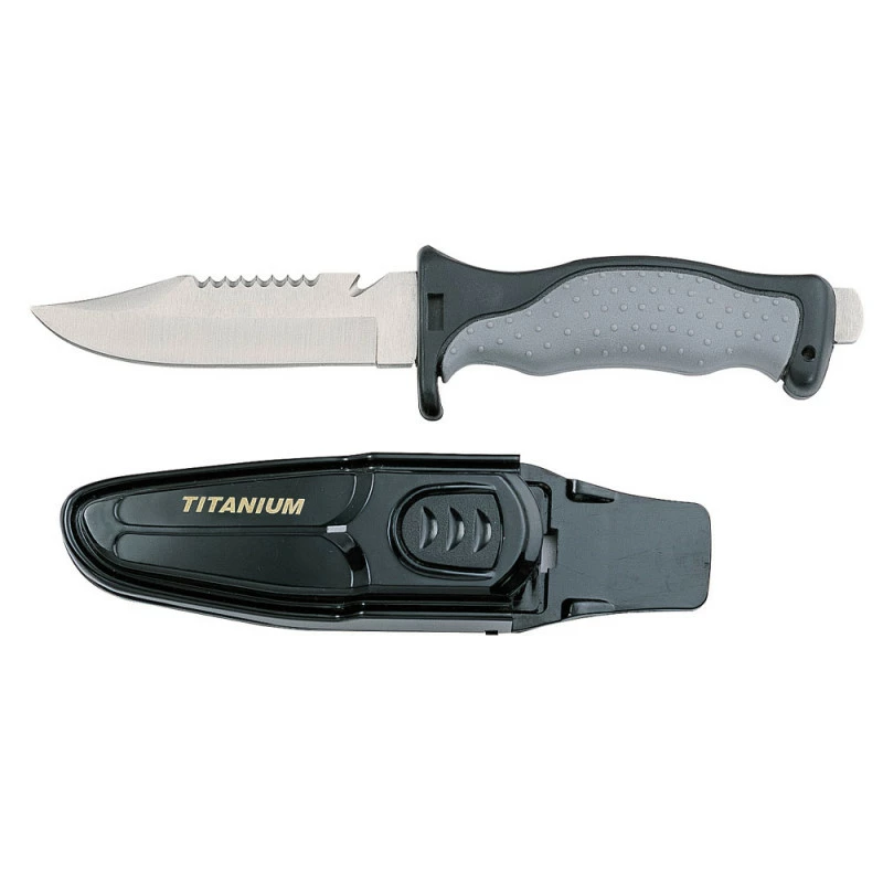 Ce poignard en titane est très facile d’utilisation et est très rĂ©sistant grâce Ă sa composition en titane. Sa lĂ©gèretĂ© le rend indispensable Ă tous les plongeurs faisant de la chasse ou de la pĂŞche sous marine.