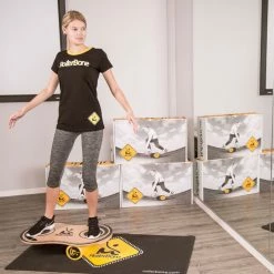 Avec un roller et une planche de bois, le but est de tenir en équilibre sans que la planche ne touche le sol. Faites vos exercices comme les flections (squat) en équilibre pour plus d’efficacité ! Varier les positions toujours sans toucher le sol et quand vous serez prêt, essayez de faire des figures comme le 180° ou le Pop Shuvit !