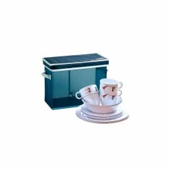 Le set vaisselle incassable REGATTA de chez Marine Business est composé de 25 pièces en mélamine. Il contient : 6 assiettes plates, 6 assiettes creuses et 6 assiettes à dessert, 6 mugs et un panier en tissu. Toutes les pièces sont fabriquées en mélamine incassable, sont empilables et antidérapantes. Le tout peut être rangé dans le panier multi-usage avec couvercle en PVC bleu marine. Il peut égalmenet servir à ranger la vaisselle, des cables, des chaussures ou tout autre accessoire nautique. Les dimensions du set sont : 34,5 x 25,5 cm, hauteur : 26 cm.