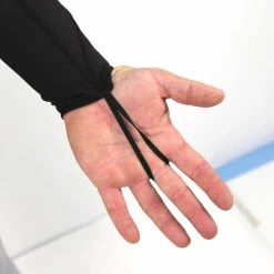 Les liens aux poignĂ©es permettent de l’accrocher aux doigts pour Ă©viter que les manches ne remontent. Pratique !