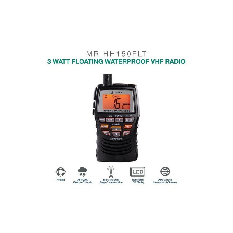 La VHF Portable COBRA H150 vous permet de restez en contact partout ou vous naviguerez avec la VHF flottante COBRA H150. Idéal pour la naviguation des plansanciers ou comme système de secours, cette radio de 3 Watt offre de performances inégalées que vous apprécierez.